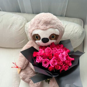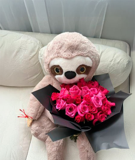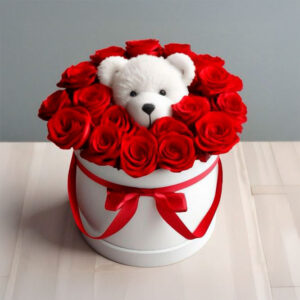 Bouquet of red roses with chocolate